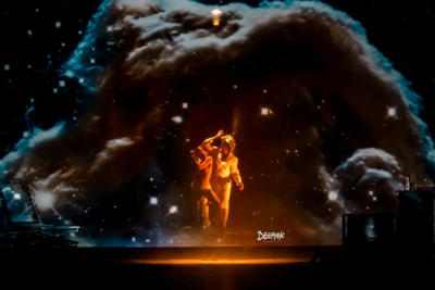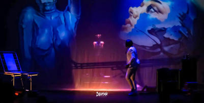 IO e AI – primavera 2024Giusto un annetto fa l'intelligenza artificiale generativa è entrata di prepotenza nelle produzioni audiovisive, e non solo. Se n'è fatto un gran parlare, e ad oggi il dibattito è ancora acceso anche se per fortuna più pacato rispetto a qualche tempo fa.Inutile dire che da quando la prima immagine generata con Dall-E è apparsa sui media abbiamo cominciato a studiare, e in modo quasi invisibile gli strumenti di AI generativa hanno cominciato ad essere inseriti nei nostri flussi di lavoro.Crediamo molto nell'artigianato e nel controllo completo sulla creazione dei contenuti, quindi siamo andati avanti coi piedi di piombo. Ma come fare a presentare l'AI per quella che è, senza dissimularla, anzi giocandoci insieme?L'opportunità è arrivata per mezzo del sempre vulcanico Stefano de Majo, che ci ha proposto uno script teatrale interessante sulla relazione tra l' artista e un' industria che oramai utilizza sempre più le AI per economizzare tempi e costi e generare contenuti di sicuro appeal.E' un approccio ha mandato in crisi praticamente tutti: dagli sceneggiatori ai grafici, ai musicisti.E anche il nostro attore, in piena crisi di identità, si fa visitare da un' analista salvo poi scoprire che l'analista è proprio una AI. Ackagi si è occupata sia del visual design che delle musiche. Vorremmo poter dire che tutto è stato dato in pasto alle macchine ma sarebbe una bugia. Buona parte del lavoro è stata svolta "alla vecchia maniera" ma finalmente abbiamo potuto presentare elaborazioni crude, prive di tutti i ritocchi e le calibrazioni che di solito si operano per rendere l'AI meno "imperfetta".In qualche modo le abbiamo dato la possibilità di sbagliare, di essere a modo suo creativa.Abbiamo usato le AI per scrivere alcune battute e recitarle con voce sintetica, per comporre brani musicali, e ovviamente per generare un gran numero di immagini che sono state inserite nelle videoproiezioni assolutamente senza filtri, così come sono.E'stato un lavoro istruttivo, divertente e affatto banale.Videoproiezione su tulle teatrale, Visual & Sound Design